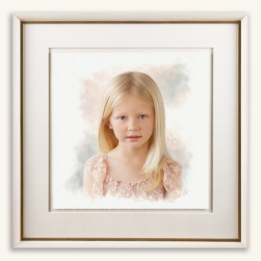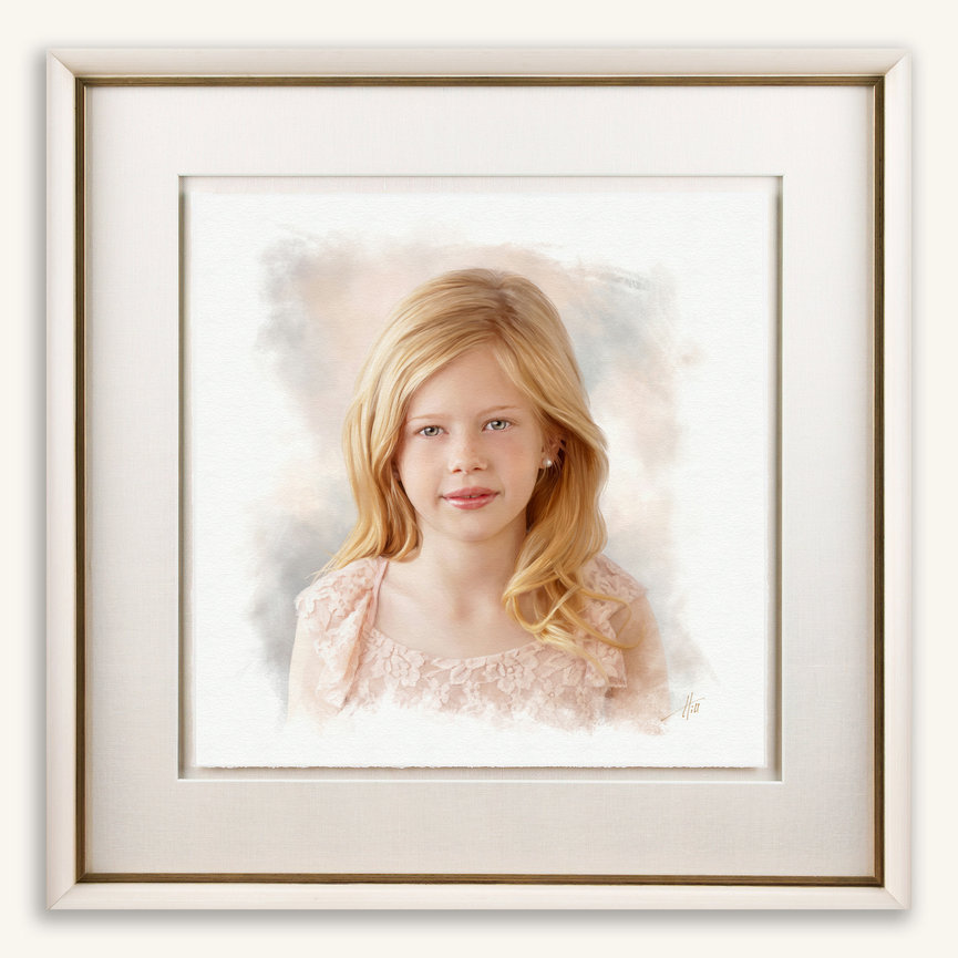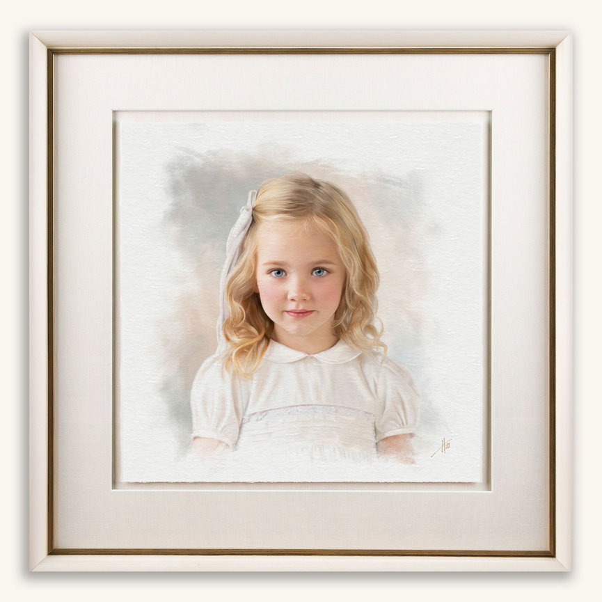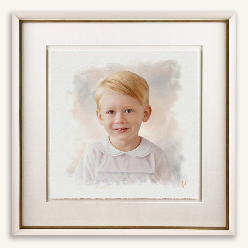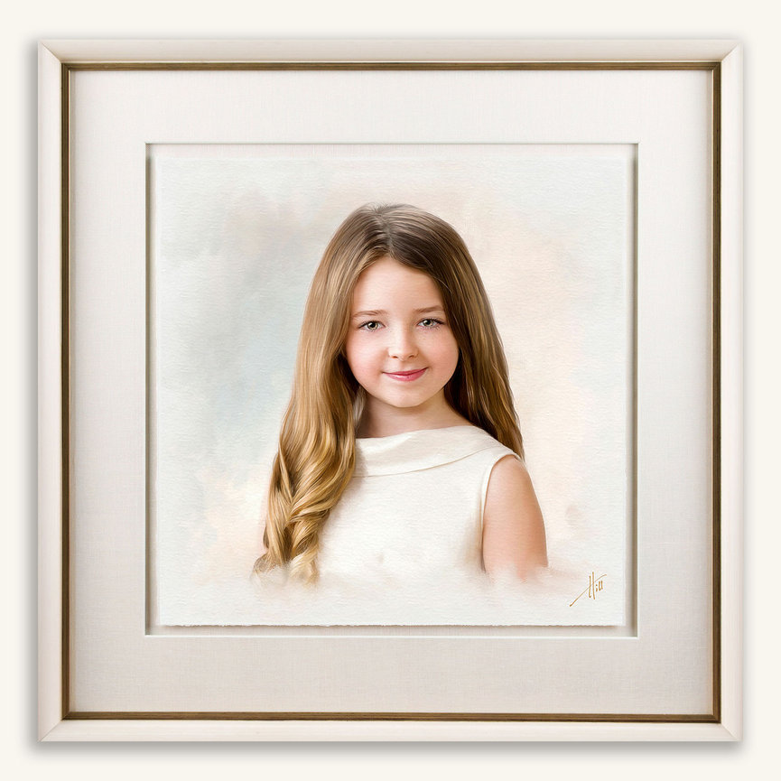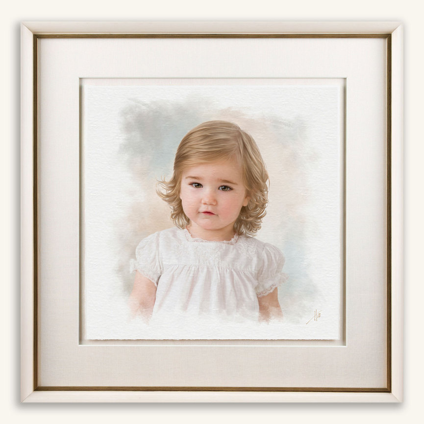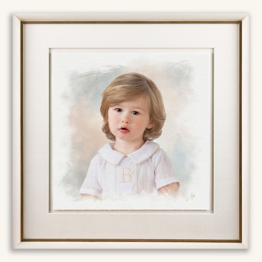 These beautifully designed hand-painted art pieces of children, combine classic expressions, posing, and clothing with a look that complements any decor.